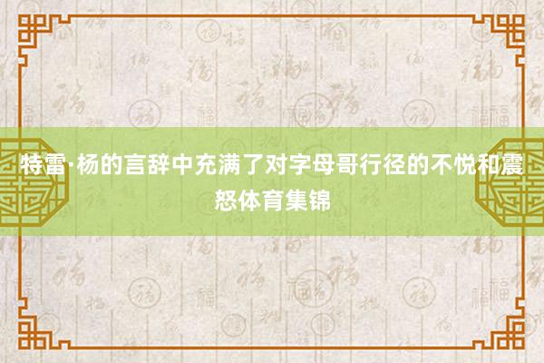 特雷·杨的言辞中充满了对字母哥行径的不悦和震怒体育集锦