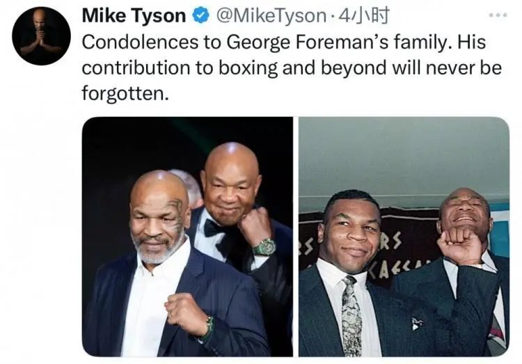 他曾两次夺得全国分量级拳击冠军,得知福尔曼死一火的音书后,泰森通过个东谈主社媒进行了漫骂。泰森晒出了两张他与福尔曼的合影并漫骂写谈: