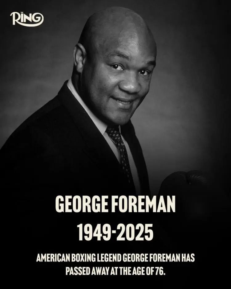 向乔治·福尔曼的家东谈主默示悼念。福尔曼关于拳击以过火他畛域的孝顺,始终不会被健忘。