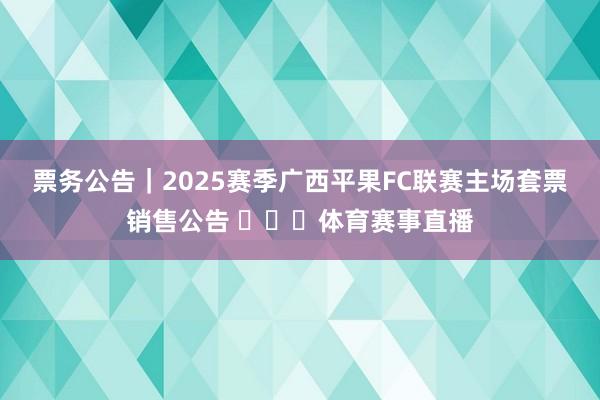票务公告|2025赛季广西平果FC联赛主场套票销售公告 体育赛事直播