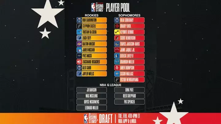 二年龄:库利巴利(奇才)、格雷迪-迪克(猛龙)、基昂特-乔治(爵士)、亨德森(开辟者)、特雷斯-杰克逊-戴维斯(好汉)、小海梅-哈克斯(热火)、莱夫利(独行侠)、布兰登-米勒(黄蜂)、阿门-汤普森(火箭)、卡森-华莱士(雷霆)、文班亚马(马刺);